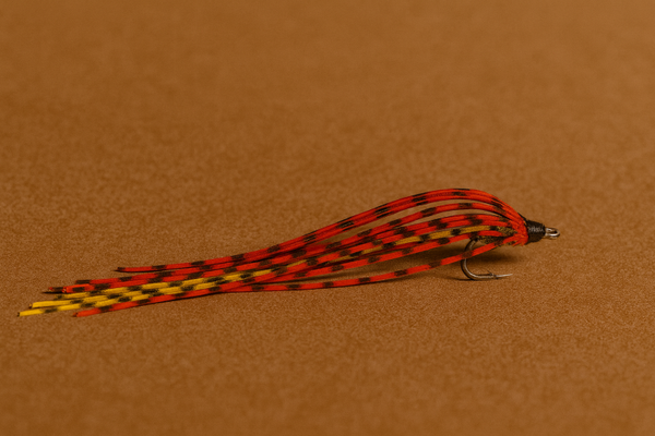 🔥 EJ’s Firestorm Streamer – Hand-Tied Red & Yellow Predator Fly