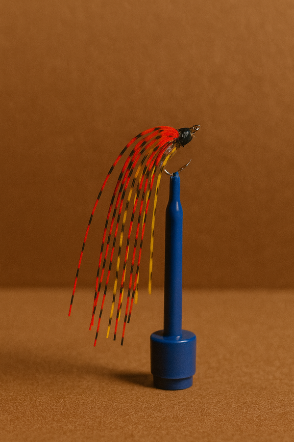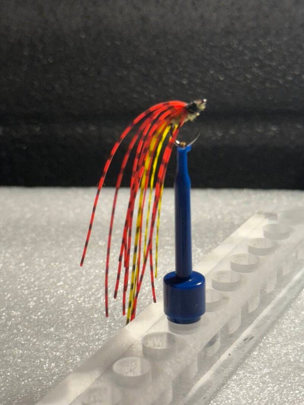 Unleash explosive movement and bold color on the water with the EJ’s Firestorm Streamer — a handcrafted fly designed to ignite aggressive strikes from trout, bass, and other predatory fish. Featuring long, flowing red and yellow barred fibers, this streamer delivers a fiery, high-visibility profile that dances with lifelike motion in every current.